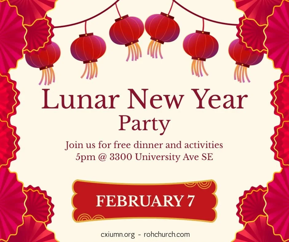Join us as we celebrate the Lunar New Year together with an evening of food, community, and fun! Everyone is welcome to come enjoy a free dinner and activities, connect with friends old and new, and celebrate cultures from around the world.